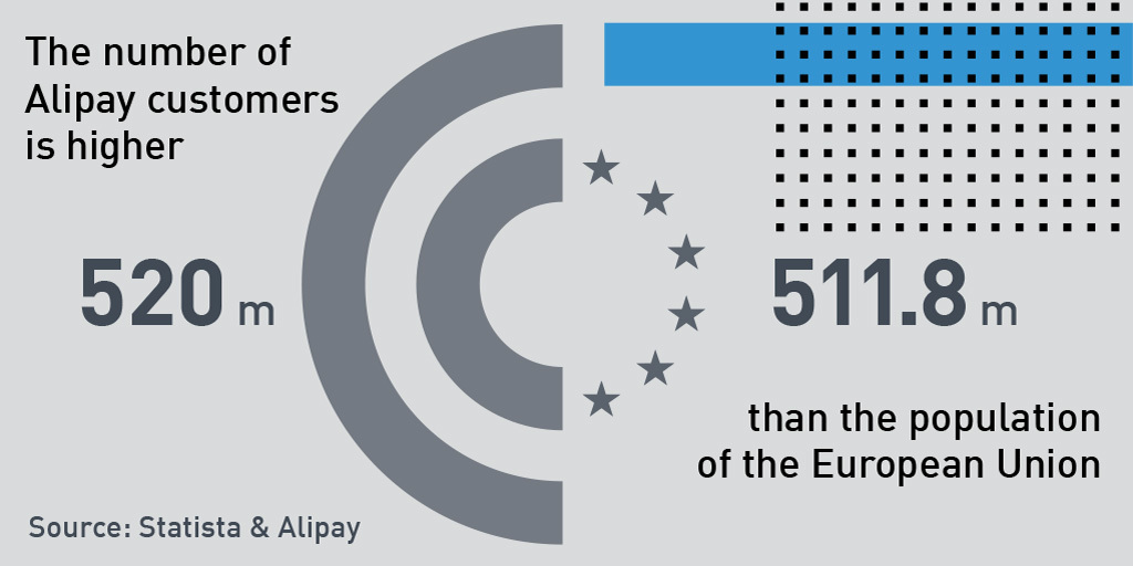 There are more active users of #Alipay than citizens of the European Union. And in addition to that, there are more than 600 m active #WeChatPay users every month.