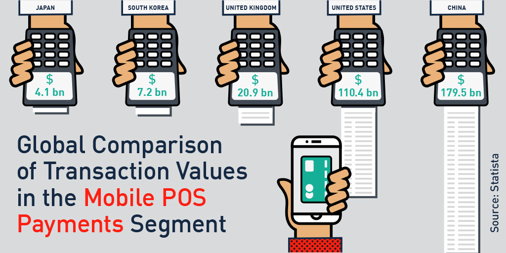 Thanks to their huge populations, China and India are in the lead and show the highest numbers of mobile payment volume in total, but also in terms of growth, followed by traditionally technology-loving Japan.