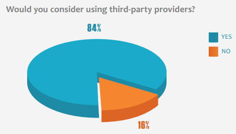 Hence, as payment complexity has significantly increased, a vast majority of retailers said they would consider using third-party providers for hosted or cloud-based services for payment-related processes. When asked in 2014, only 60% had considered to do so.