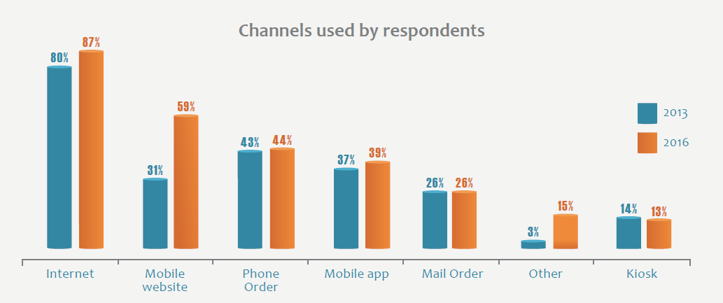 In order to enable clients a positive and seamless customer experience, many retailers are currently using significantly more channels than three years ago. Almost no one operates without a website, but in particular the number of mobile websites has grown significantly.