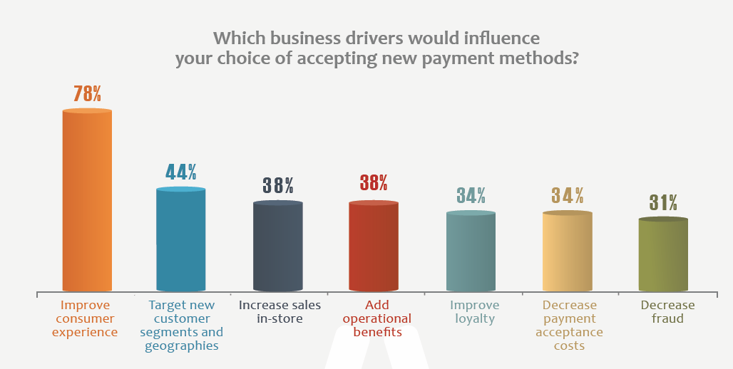 When retailers were asked what would convince them to accept new payment methods, the vast majority of nearly 8 out of 10 responded that they would do so if they could offer better customer experience. This is hardly surprising in times when customers are as well-informed, technical savvy and demanding as never before.