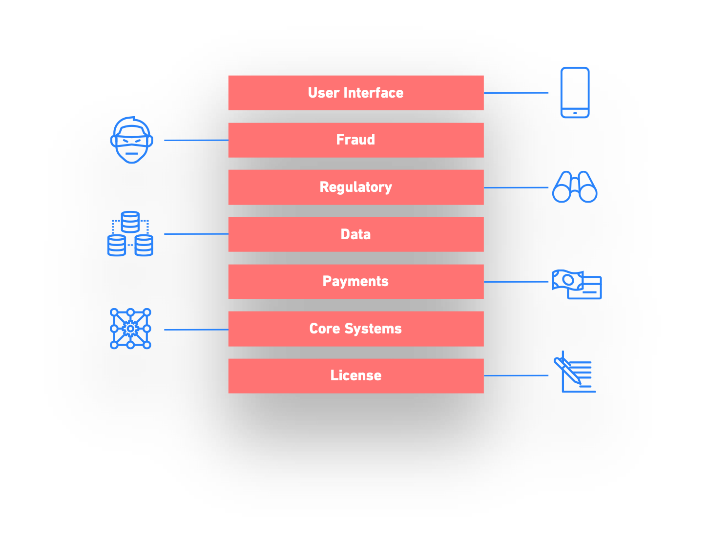 In addition, a technology core i.e. a core banking system would be required. This software is responsible for opening and maintaining user accounts, logging where the customers’ money is and how it is moving around. Also, it would be required to integrate with a series of payment systems so customers can send and receive money into and out of their accounts using SEPA or SWIFT rails. To issue payment cards, it would be necessary to become a principal member of either the Visa or Mastercard networks. To issue loans, it would be required to build up intelligence about the credit history of the target group via credit scoring agencies or alternative means. For AML and KYC, additional expertise coming yet again from a plethora of specialized vendors, would be required to comply with all relevant local regulation. Last but not least, the company wishing to build a financial product would need to implement fraud prevention systems, which requires yet again more software and systems. This simplified overview demonstrates how challenging it is to build a financial product as a non-bank player.