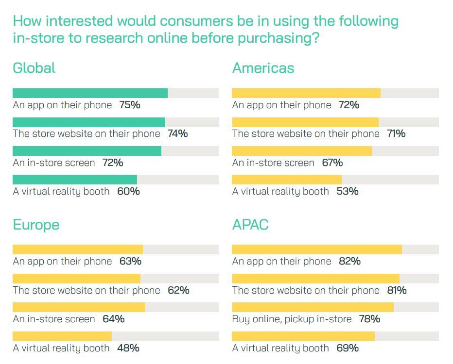 Retailers need to pre-empt this and assist customers, by joining the dots between the physical store and the digital world. Wirecard research has found that 75% of consumers globally have said they would be interested in using an app on their phone to research a product before a purchase is made in-store. Most consumers (74%) have also said that they would use the store website on their phone prior to purchase.
