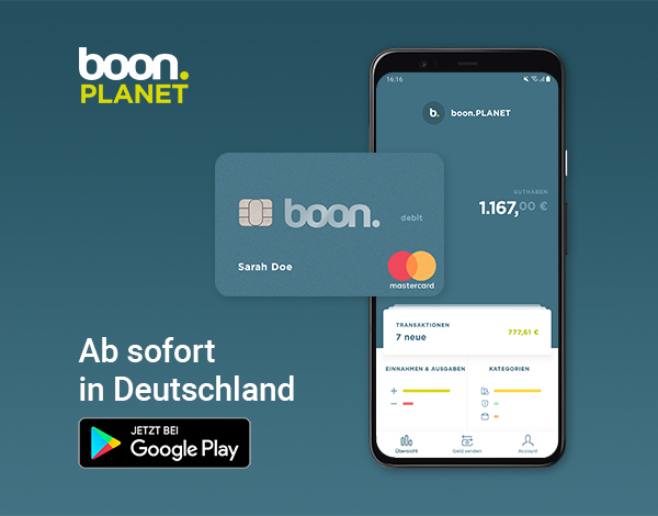 Mit boon Planet lässt sich in fünf Minuten ein vollumfassendes digitales Bankkonto eröffnen. Nutzer können SEPA-Überweisungen an Dritte tätigen und eine physische Debit-Mastercard in Kombination mit ihrer boon App verwenden. Zudem haben sie einen kompletten Überblick über alle Finanzen und können mit einem Smart Device oder einer Karte kontaktlos bezahlen. Dank der Multi-Banking-Funktion können Nutzer bald außerdem die Konten anderer Banken zu boon Planet hinzufügen, um von einem ganzheitlichen Überblick über ihre Finanzen zu profitieren. Auch werden weitere Banking-Services wie Überziehungskredite und Sparpläne integriert.
